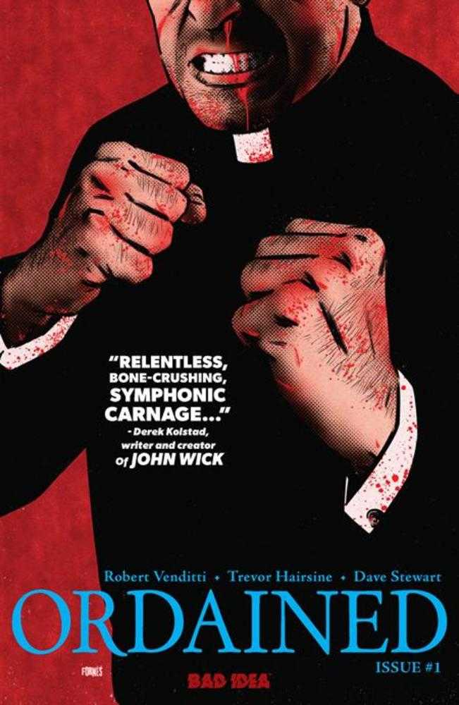 New York Times best-selling author Robert Venditti (SUPERMAN ‘78, PLANET DEATH) joins forces with powerhouse artist Trevor Hairsine (DCEASED, X-MEN) and ten-time Eisner Award-winning colorist Dave Stewart (HELLBOY, STAR WARS) to deliver a brutal, no-holds-barred action crime comic that will leave you breathless. Father Royston Craig became a priest late in life but he's determined to make up for lost time. Along with his regular duties at his St. Louis church, he also performs the prayers of the last rites to patients on their deathbeds at the nearby hospital. One day, he's called to give these sacraments to Cormac Byrne, who doctors say won't last the night. Byrne, like many others, has turned to God only at the end; he hasn’t been to church in decades. Father Roy is eager to hear his confession, but what starts as petty crime from a lifetime ago quickly becomes a horrifying litany of gangland violence and killings. Cormac Byrne is no ordinary man. He is, in fact, the head of the Irish mafia. God offers forgiveness to all who truly repent, and Father Roy completes his task by absolving Byrne of his mortal sins, leaving the man to die at peace… ...until the next morning. When Byrne makes a miraculous medical recovery. No longer at death’s door, Byrne is quick to return to his old ways. It’s business as usual and he’s got loose ends to tie up. First things first: KILL THE PRIEST who now knows where all the bodies are buried. But Father Roy’s collar wasn’t always white, and Byrne is going to learn the hard way that Father Royston Craig was once Chief Petty Officer Royston Craig, a former Navy SEAL who found his faith in the midst of battle. Now Father Roy must face vicious gangsters, corrupt cops, and his own inner demons if he is to survive. And while he will be forced to tap into a violent skill set he thought never to again entertain, the one thing Father Roy will not do… is kill. Soon to be a major motion picture starring an Oscar-nominated, A-list actor.