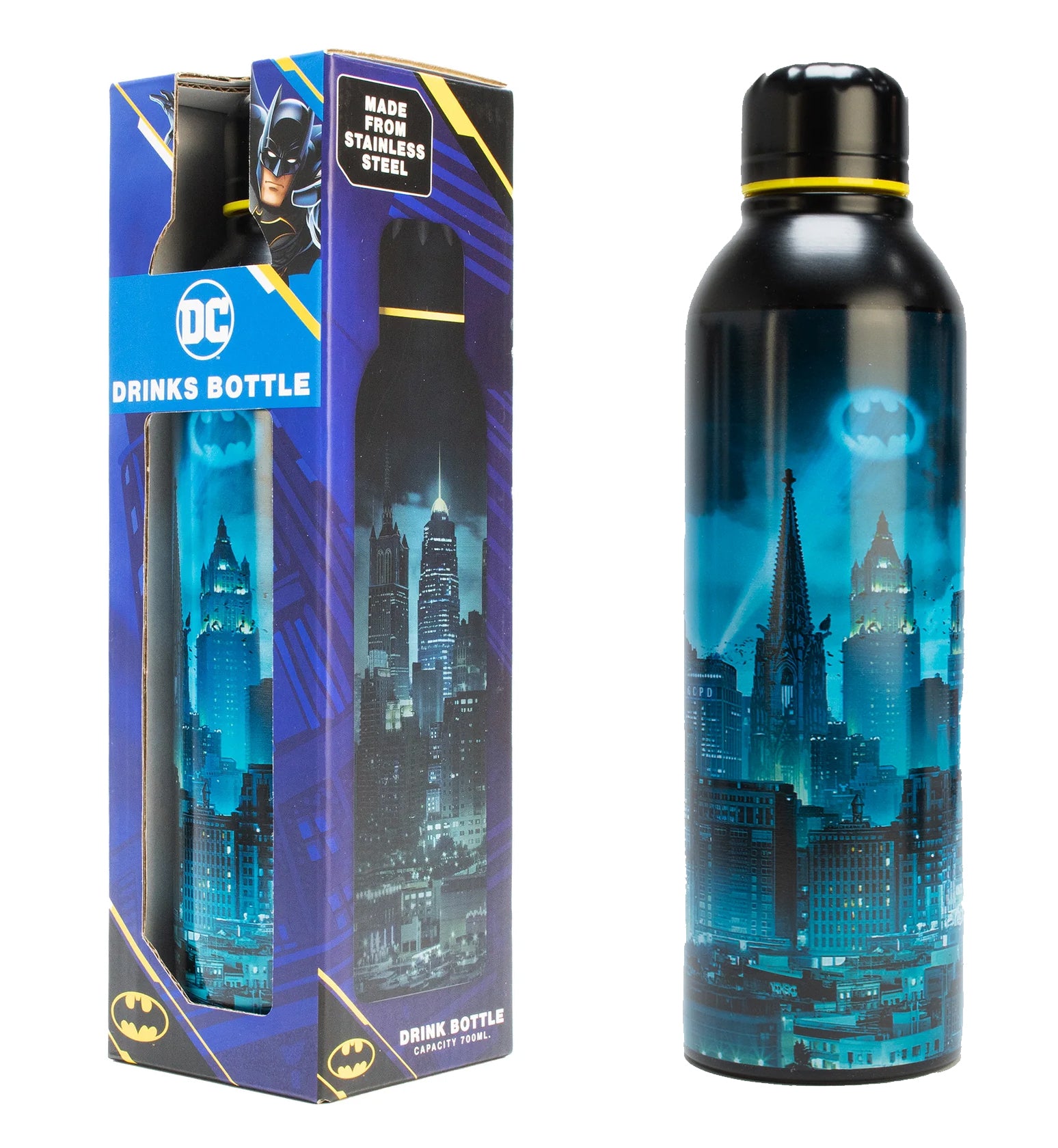 Keep hydrated whilst joining Batman fight crime. Stunning dusk skyline graphics featuring Batman's logo in the sky make this drinks bottle a must for any fan.