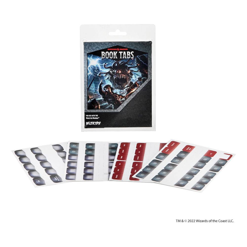 Never lose your place with adhesive book tabs for the Monster Manual. This pack contains 92 acrylic tabs designed to help busy dungeon masters keep track of important creatures like dragons, beholders, and even blank tabs for complete customization. The Monster Manual book tab pack contains the following: