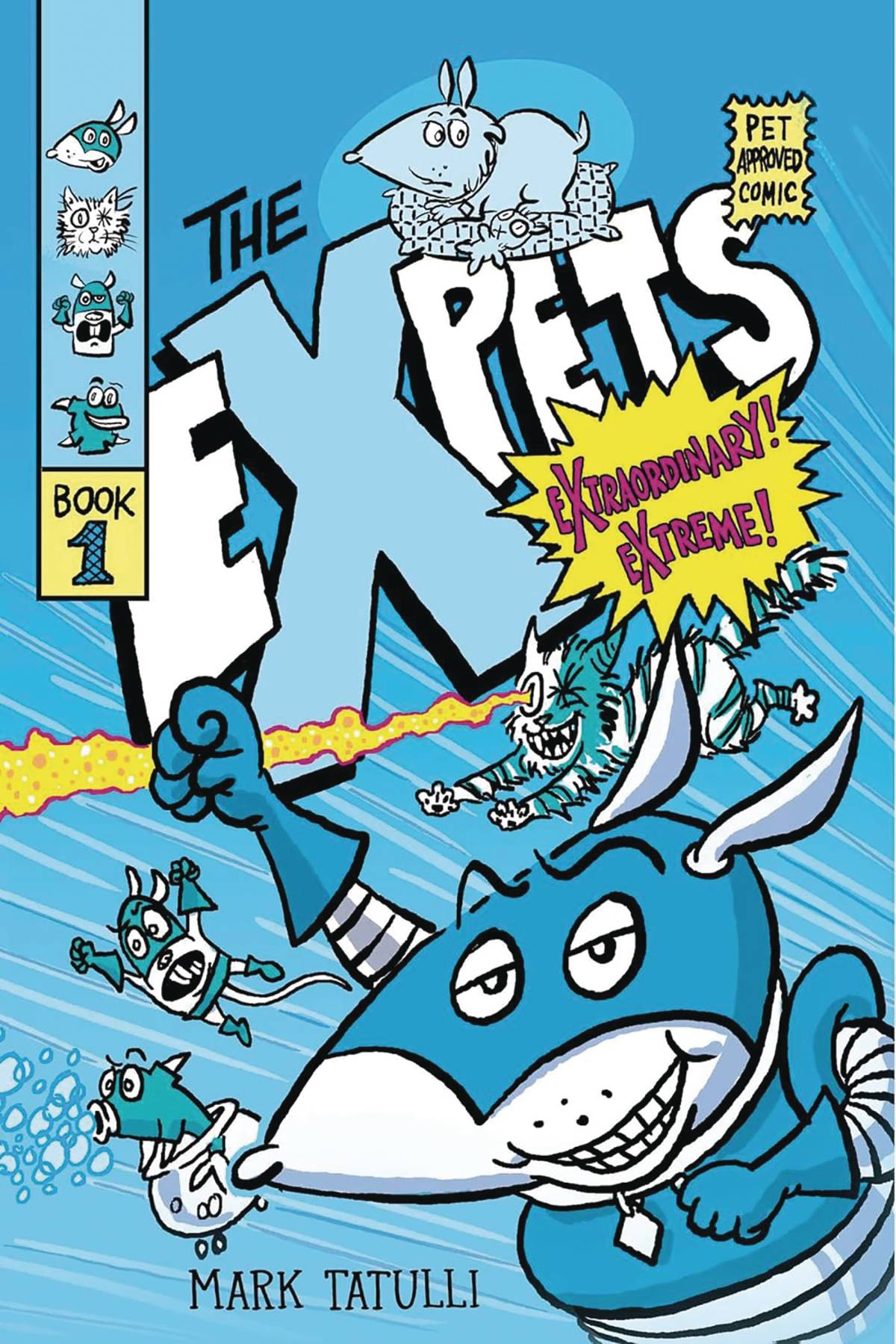 Bosco the dog loves being a house pet, loves his comfy dog bed and nice big house and, of course, his favorite toy kitty. So when two burglars break in, Bosco defends his home with all his might, which includes releasing some well-timed-and near supersonic-stink that repels the would-be thieves. With his foes in retreat, Bosco thinks it's all over... until a robot descends from the sky. The flying robot delivers Bosco to the city and tells him that, due to his unusual "abilities," he's been chosen to become one of the eXpets, a team of superheroes with extraordinary abilities who team up to solve problems of all sizes. Bosco would be joining a turtle mastermind, a laser-eyed kitty, Wonder-Guppy, and Ginormous Gerbil. The mission? Rescuing the world's kittens, who have all gone mysteriously missing. Bosco isn't sure he's all that extraordinary and certainly doesn't enjoy tasks with a lot of pressure. But... how can he turn his back on kittens?