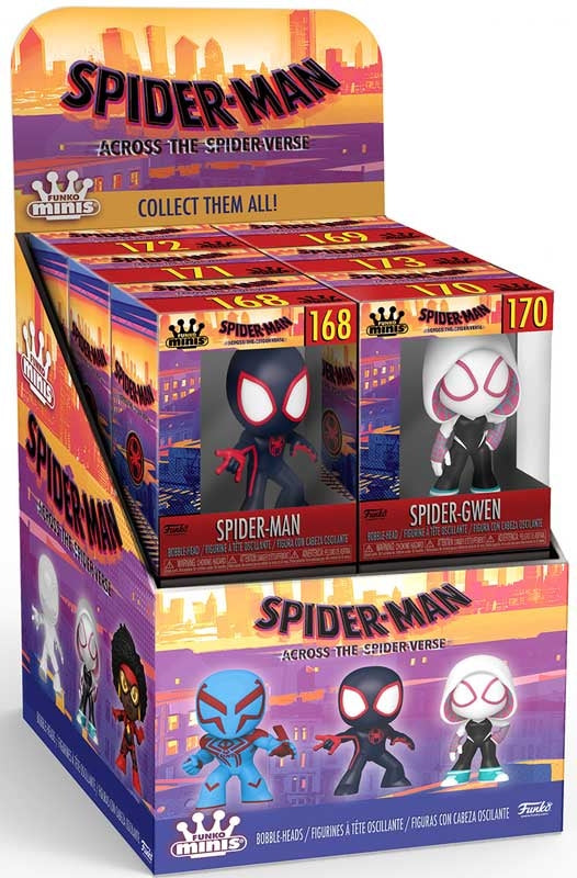 Swing into action with Spider-Man: Across the Spider-Verse Minis! Miles Morales is exploring the threads of the multiverse web with his team of spider friends, and now their adventure has led to your Spider-Man: Across the Spider-Verse collection. There’s Spider-Man, Spider-Man, Spider-Man (translucent), Spider-Gwen, Spider-Gwen (glitter), Spider-Man 2099, Spider-Man 2099 (glow-in-the-dark), The Spot, Spider-India, and Spider-Woman. Vinyl bobblehead is maximum 3-inches tall, varies depending on character. One bobblehead per single package purchase.