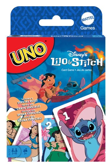 Fans of Disney's Lilo and Stitch will love playing with this themed UNO card game. With a deck featuring graphics inspired by favorite characters and scenes, players try to match colors and numbers -- there's even a special 'Ohana' rule that ends up with all players having four cards in their hand! And when down to a last card, don't forget to yell 'UNO!' Makes a great gift for fans of Disney's Lilo and Stitch and card game lovers ages 7 years old and up. Colors and decorations may vary.
