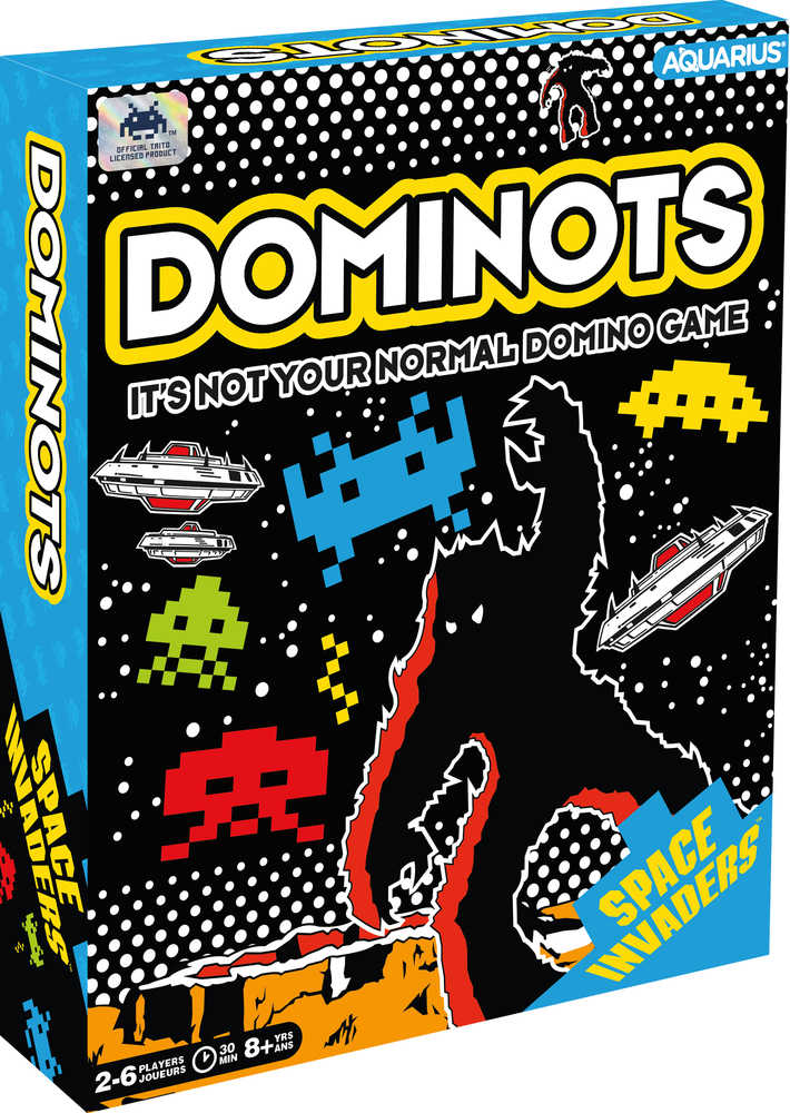 From NMR Distribution America. Are you an OG Gamer or just someone who longs for the games on the past? Then this AQUARIUS Space Invaders Dominots game was made for you. Think of it like dominos 2.0. Not only can you build out. You can also build up. This game not only looks cool but is fun for kids and adults alike. Match & stack tiles for the ultimate scoring to win! You're going to have blast matching tiles with this unique twist on the game of dominos. | 30-60 minutes to play | 2-4 players/teams | Ages 8+ | Do you have what it takes to be crowned the DOMINOTS winner? Looking for a fun game for the family? This Space Invaders Dominots game has it all and is fun for all ages.