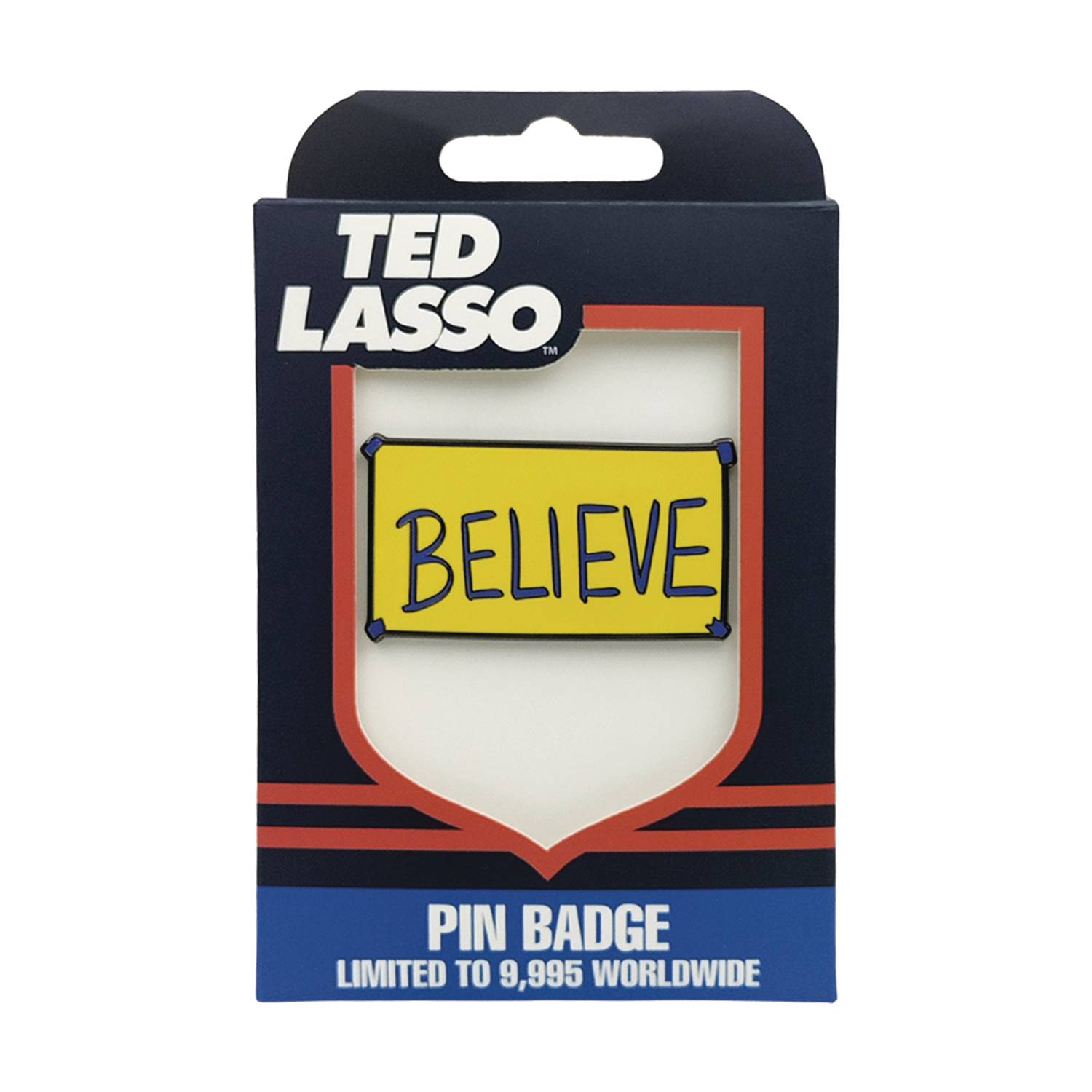 From Fanattik. Right from the very first episode, Ted Lasso wanted his AFC Richmond team to believe in themselves, and demonstrated that by writing the word on a piece of paper and taping it to the locker room wall. The message stayed relevant to the very last episode, with the sign itself being an important plot point. This limited edition pin badge recreating the sign is finished in coloured enamel and measures 5 x 2.9cm. It is numbered on the reverse as one of 9,995.